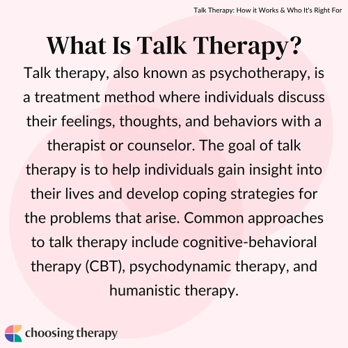 Talk therapy is a general term for therapy where a person works with a trained therapist by talking through thoughts, feelings, experiences, and patterns in a safe, confidential setting.